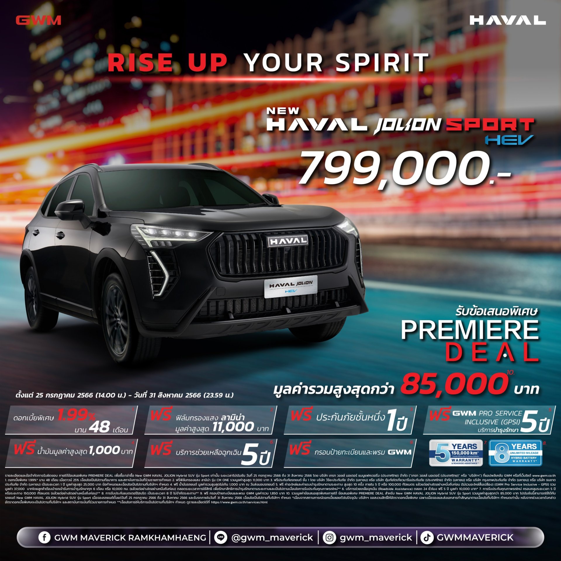 New HAVAL JOLION Sport HEV 799,000 บาท ดอกเบี้ยพิเศษ 1.99% นาน 48 เดือน